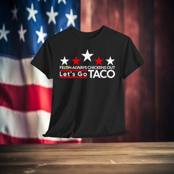 Whether you’re heading out for a casual day with friends or just want to inject some humor into your everyday style, the Funny Let’s Go Taco Felon Always Chickens Out Shirt is sure to turn heads and spark conversations. It’s a great conversation starter and a fun way to showcase your personality and sense of humor.