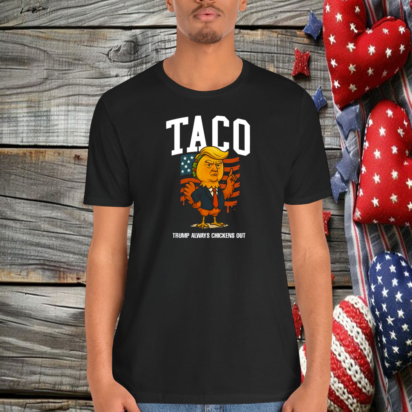 Introducing the TACO USA Trump Always Chickens Out Shirt, a bold and humorous statement piece for those who aren’t afraid to speak their mind. Made from high-quality, soft cotton material, this shirt is not only comfortable to wear but also durable for long-lasting use.