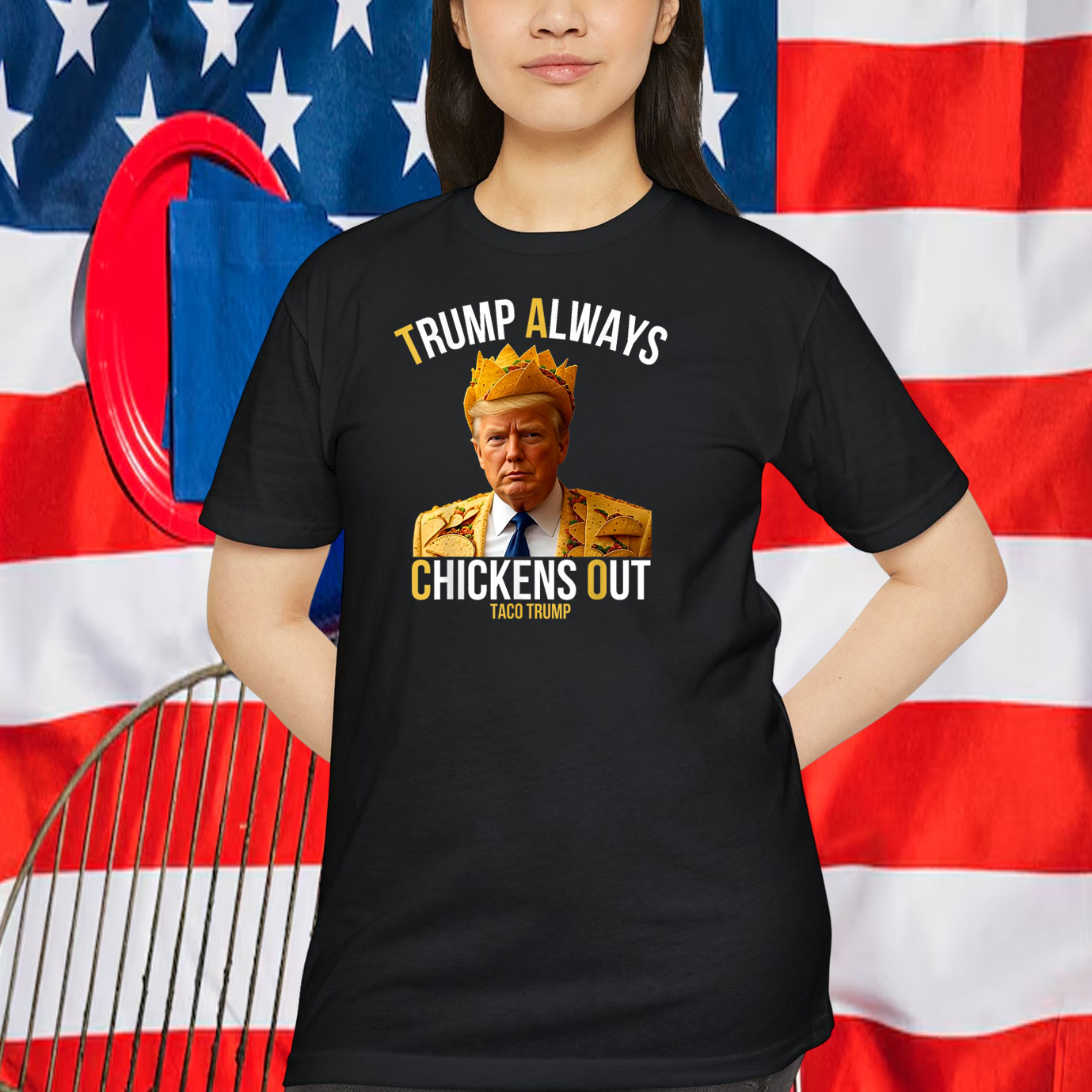 Don’t miss out on the opportunity to own this must-have piece of political satire. Order your Trump Always Chickens Out Taco Trump Shirt today and let your voice be heard in a fun and fashionable way.